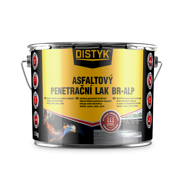 Asfaltový penetrační lak BR-ALP Distyk, plechovka 8 kg, černý