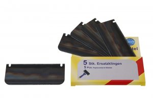 5 ks náhradních břitů do špachtle RAVA. Jedná se o 5 ks náhradních nerezových ohebných břitů používaných do špachtlý RAVA.
