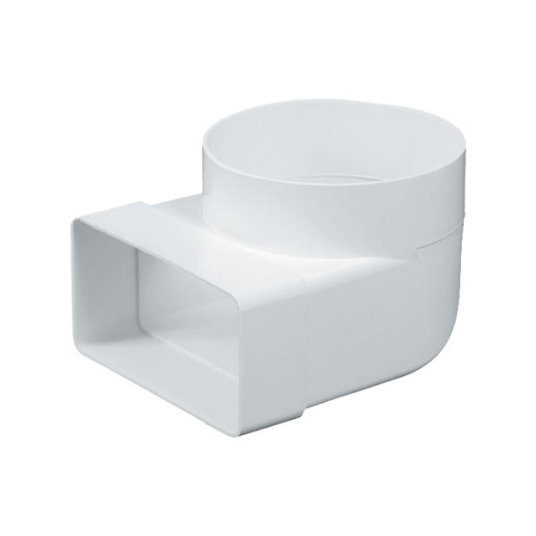Slouží k přechodu z plochého ventilačního vedení na kulaté při přechodu z vertikálního vedení na horizontální.