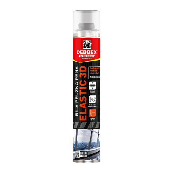 Pružná 3D pěna je jedno komponentní, víceúčelová PUR pěna, speciálně vyvinuta pro vyplňování spár s velkým dilatačním pohybem, objemovou změnou podkladu, s požadavkem na minimální propustnost vodní páry, vysokou pružnost a zvukovou izolaci. Vlastnosti
