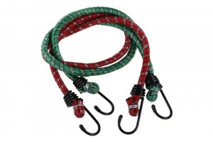 Elastické gumové popruhy, opletené polyesterem a zakončené oboustranně háky z ocelových poplastovaných drátů k uchycování zavazadel.