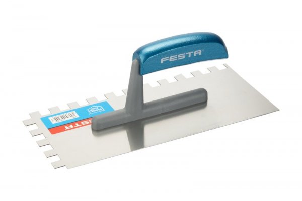Hladítko nerezové rovné FESTA 500x130 mm s dřevěnou rukojetí, tl.plechu 0,7 mm. Ostří je perfektně vytvarováno, je vyrobeno z prvotřídní tvrzené nerezové oceli. Používá se zejména k nanášení lepidel pod obklady a dlažby, dále pak k nanášení stěrek, štuků, omítek, tmelů a dalších stavebních hmot.