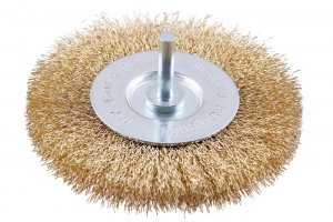 Rotační kartáč - okružní, provedení : vlnitý drát 0,25 mm - pomosazený, průměr 100mm, stopka 6 x 27 mm, pozinkované tělo kartáče, počet drátů : 1800, délka drátu : 23 mm, max. přípustné otáčky: 4500 1/min Použití: pro leštění, zdrsňování, ostranění rzi a otřepů.Podobné produkty