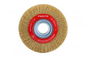 Rotační kartáč - okružní, provedení : vlnitý drát, kartáče FESTA zaručují kvalitní použité materiály i zpracování, drát 0,3 mm - pomosazený, průměr 150 mm, uchycení otvor 32 mm (včetně redukčních kroužků 12,7mm - 1/2, 15,8 mm - 5/8, 19 mm - 3/4, 22,2 mm a 25,4 mm - 1), počet drátů 7200, délka drátů 30mm, maximální otáčky za min. 6000, vhodný pro zámečnické a kovoobráběcí práce, odstraňování rzi, barev, leštění.… , balení : papírový box.Podobné produkty