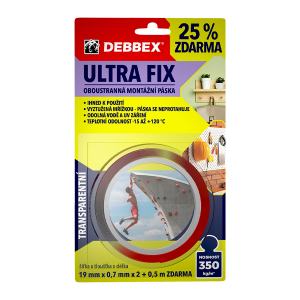 Oboustranná montážní páska ULTRA FIX 19 mm × 0,7 mm, délka 2,5 m 2,5 m transparentní