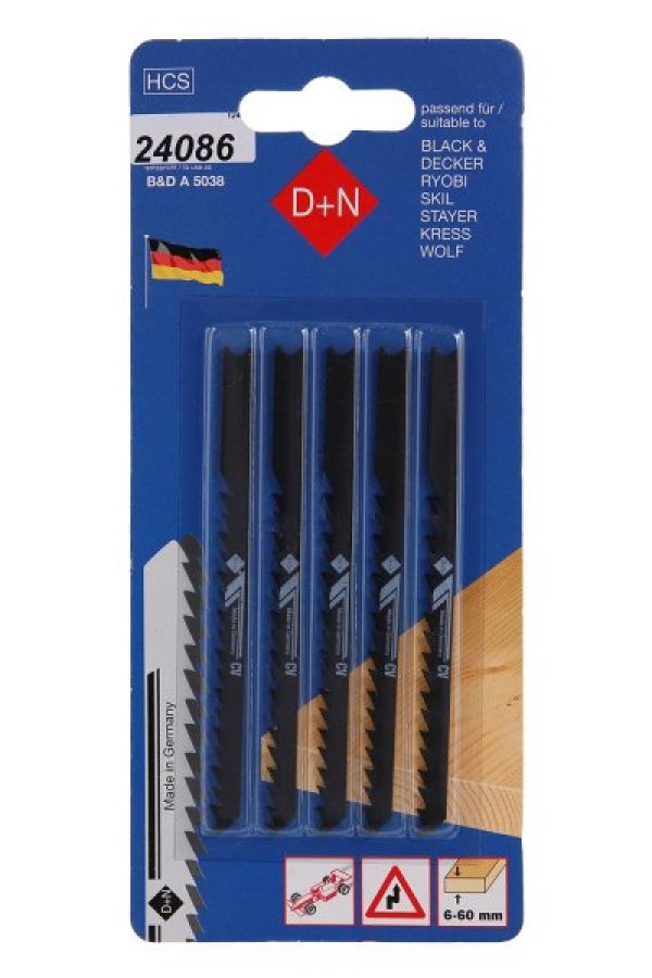 D+N je obchodní značkou MPS Sägen GmbH, nejznámějšího německého výrobce řezných nástrojů, které vyrábí pro značky BOSCH, HITACHI a další. Pod touto značkou D+N naleznete v našem sortimentu ucelenou nabídku listů do přímočarých pil pro různé materiály s uchycením BOSCH i Black Decker.