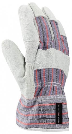 Dlaň z hovězí štípenky, hřbet a manžeta z bavlněné tkaniny, CE EN 388, velikost 10,5.