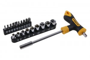 - T šroubovák s nástavci - bity 1/4" * 25 mm a hlavice 1/4", CrV, set 20 kusů