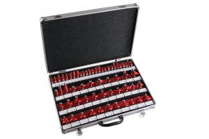 Tvarové frézy na dřevo - sada 59 ks, frézy jsou osazeny kvalitními SK plátky, různé druhy tvarových fréz bez nebo s vodícím kolečkem a kvalitním ložiskem, použití : pro frézování drážek a hran různých tvarů, stopka 8mm, balení : odolný hliníkový kufřík.