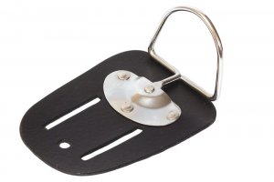 Nářaďová spona O , kůže / kov, použití: k uchycení nářadí - např. kladivo, na nářadový pás nebo opasek, lze kombinovat s položkou 37310 - Nářaďový pás, balení: papírová karta s eurootvorem.