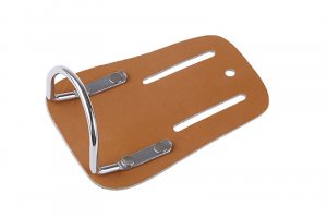 Nářaďová spona U , kůže / kov, použití : k uchycení nářadí - např. kladivo, na nářadový pás nebo opasek, lze kombinovat s položkou 37310 - Nářaďový pás, balení : papírová karta s eurootvorem.