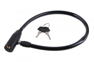 55 cm spirálové lanko z kvalitní oceli Ochranný plášt z PVC Průměr: 8mm Klíče: 2 Váha: 100g.